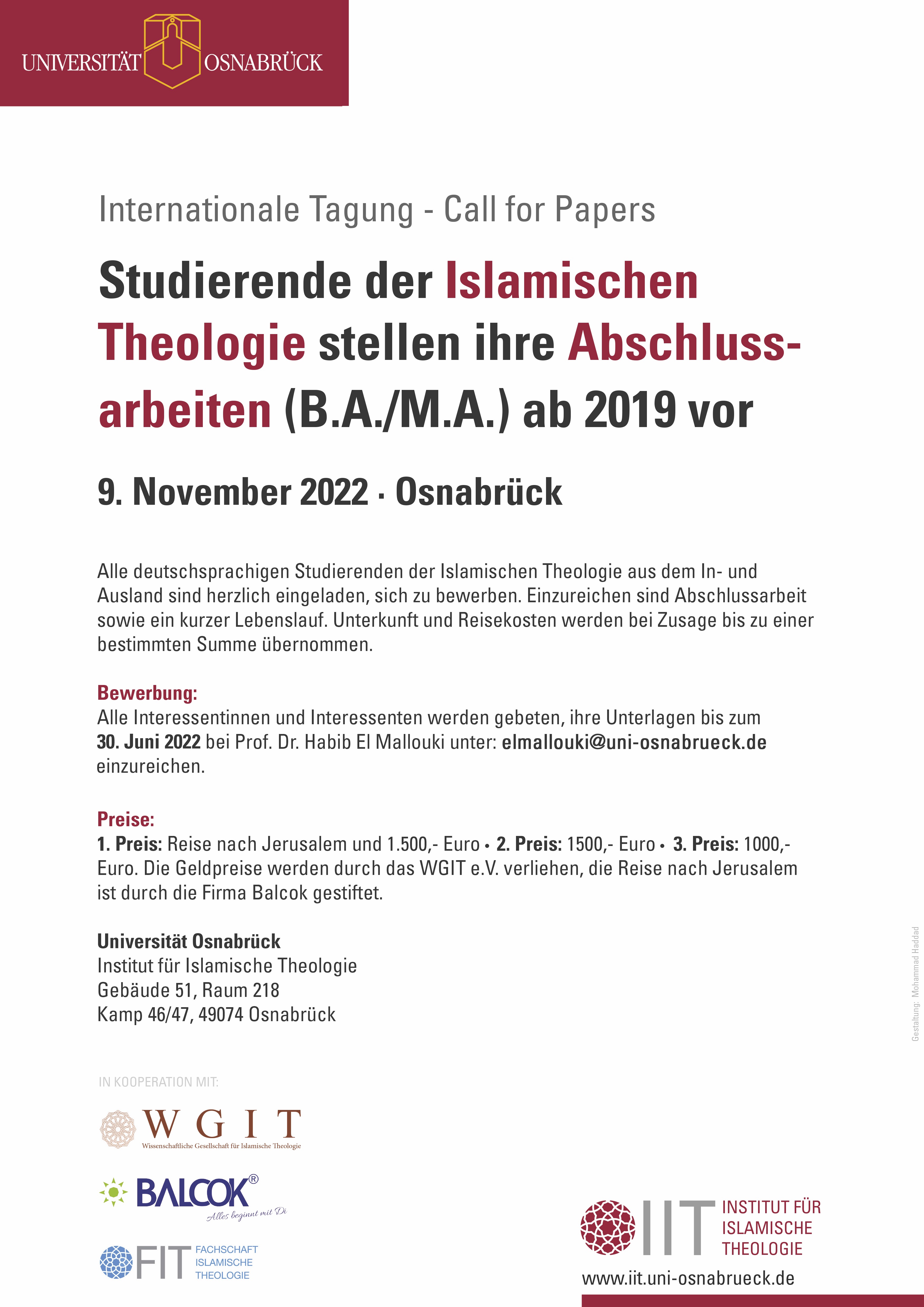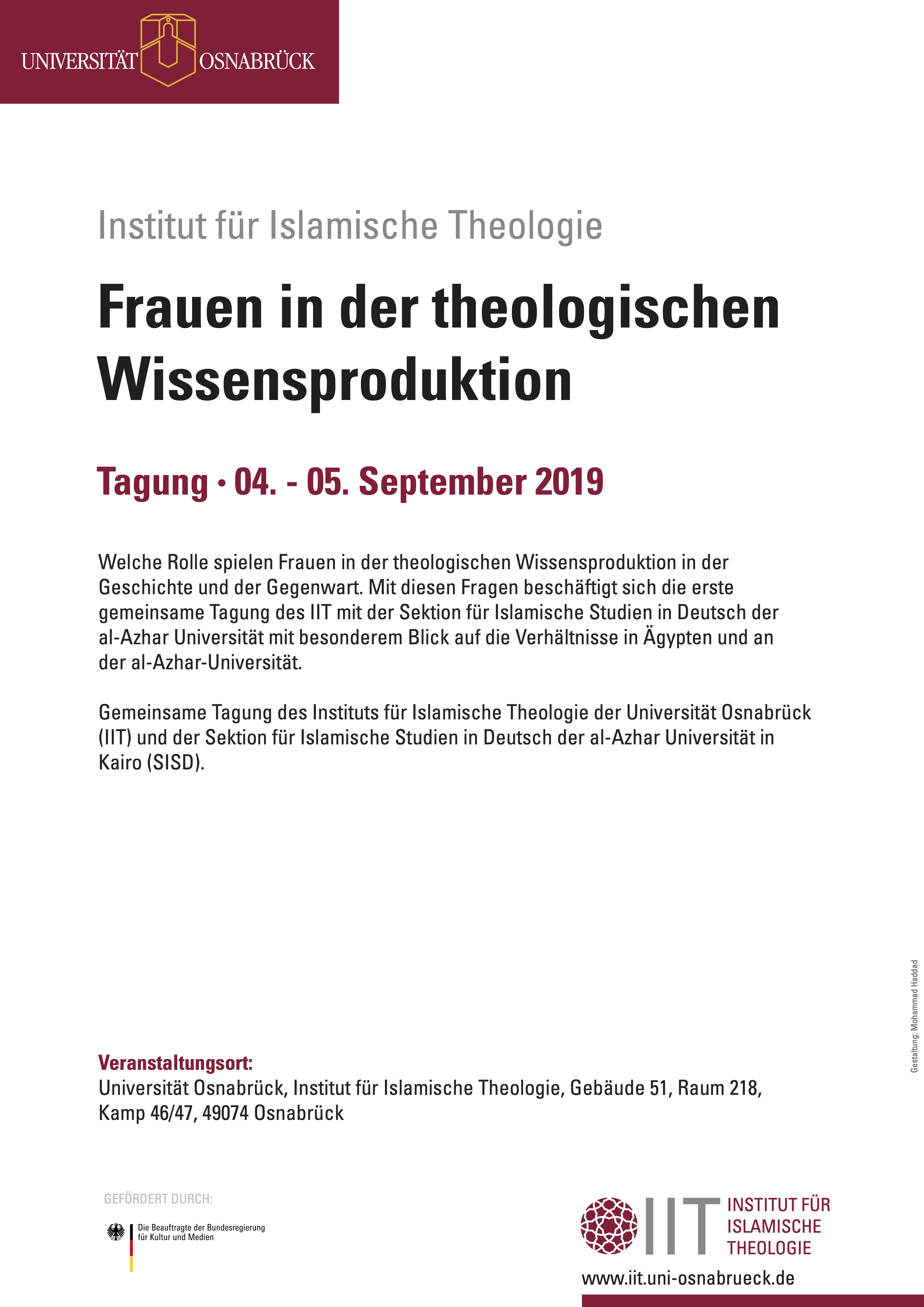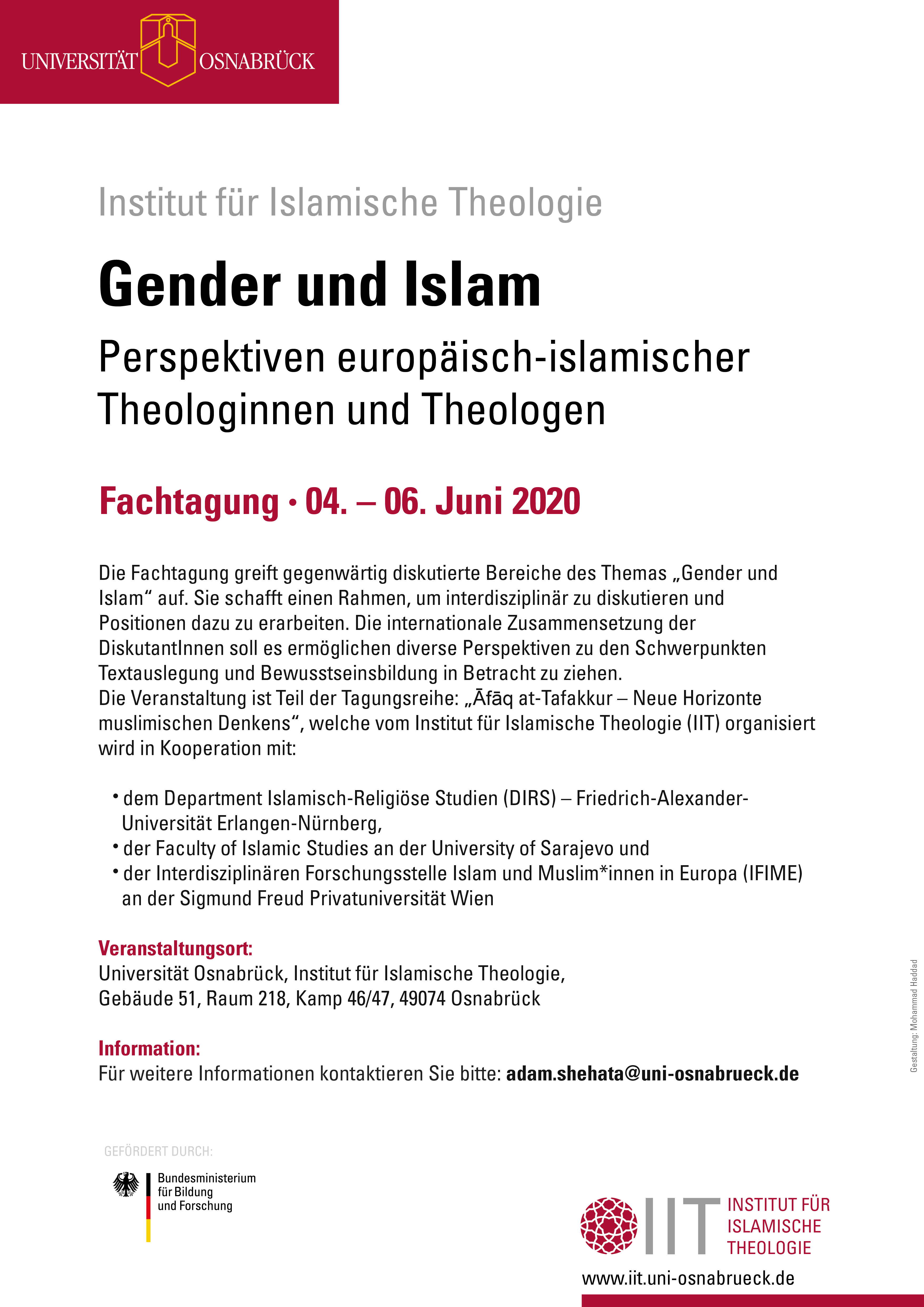 - 04.-06.06.2020 | Gender und Islam. Perspektiven europäisch-islamischer Theologinnen und Theologen. Fachtagung des Instituts für Islamische Theologie an der Universität Osnabrück