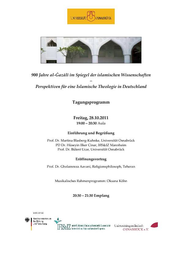 - 28.-30.10.2011 | 900 Jahre al-Ġazālī im Spiegel der islamischen Wissenschaften.