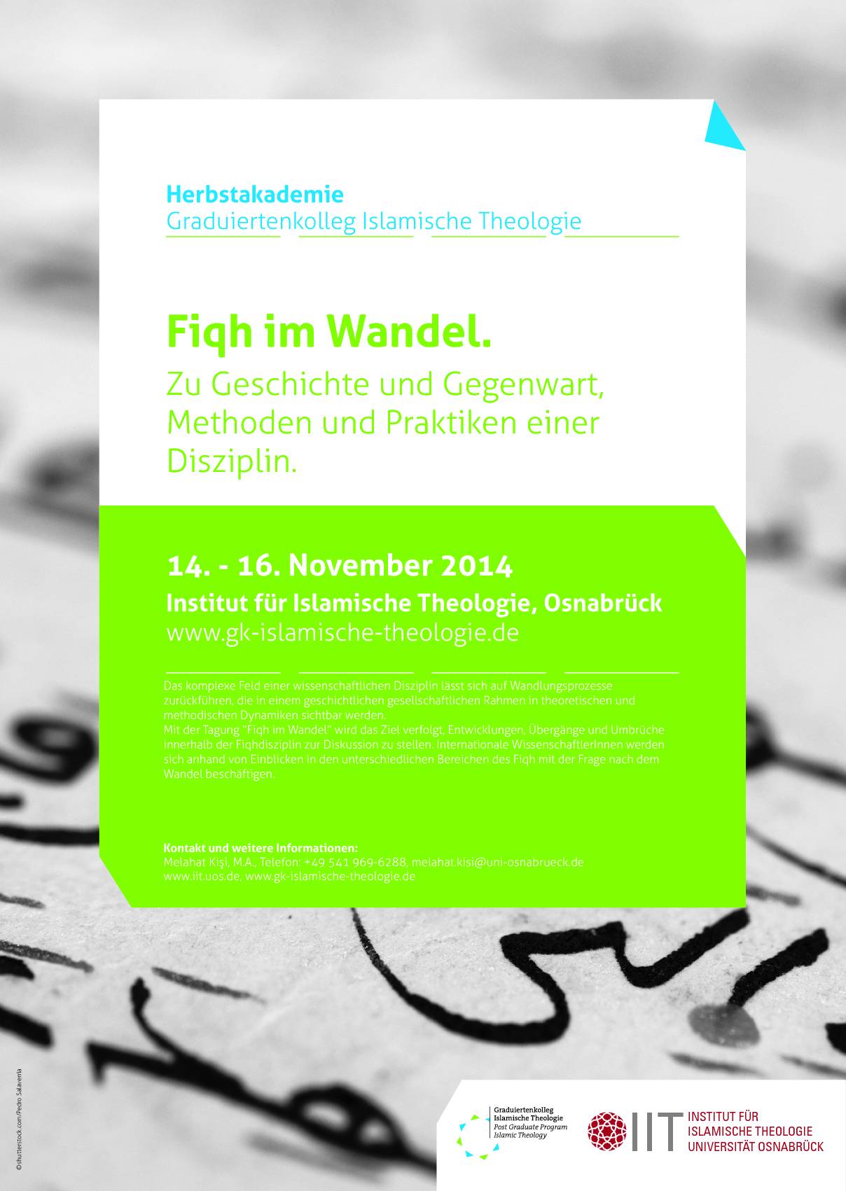 - 14.-16.11.2014 | Fiqh im Wandel. Zu Geschichte und Gegenwart, Methoden und Praktiken einer Disziplin. Tagung des Graduiertenkollegs Islamische Theologie der Stiftung Mercator in der Zusammenarbeit mit dem IIT Osnabrück