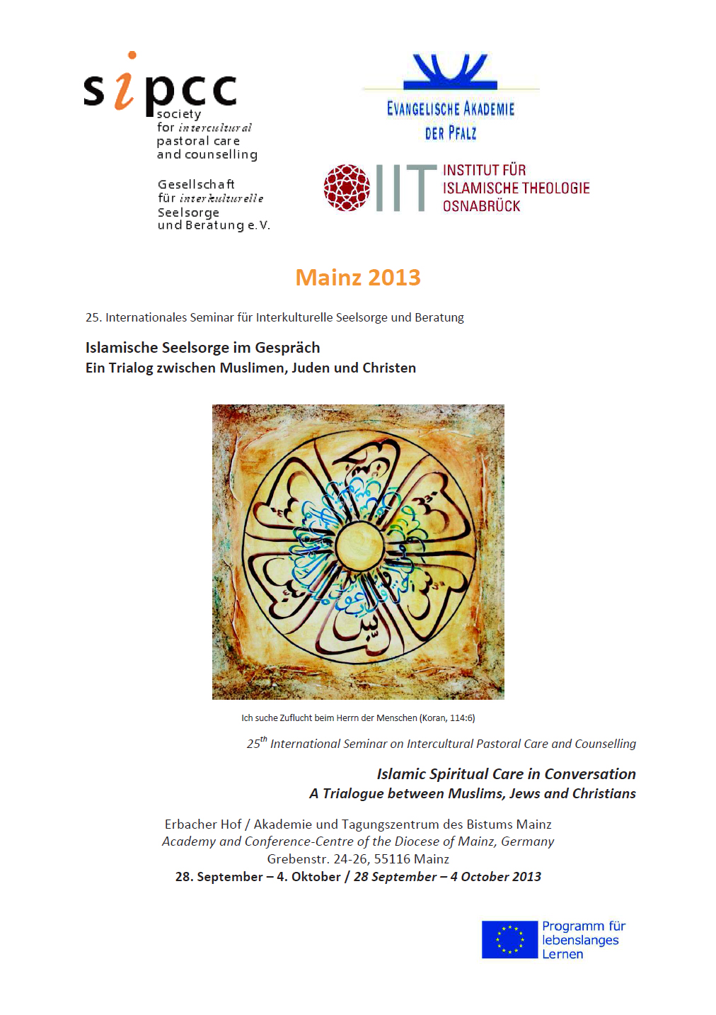 - 28.09.-04.10.2013 | Islamische Seelsorge im Gespräch - Ein Trialog zwischen Muslimen, Juden und Christen. Internationales Seminar zur Seelsorge in Kooperation mit: sipcc-Gesellschaft für interkulturelle Seelsorge und Beratung e.V., Evangelische Akademie der Pfalz, Landesverband der jüdischen Gemeinden Rheinland-Pfalz.