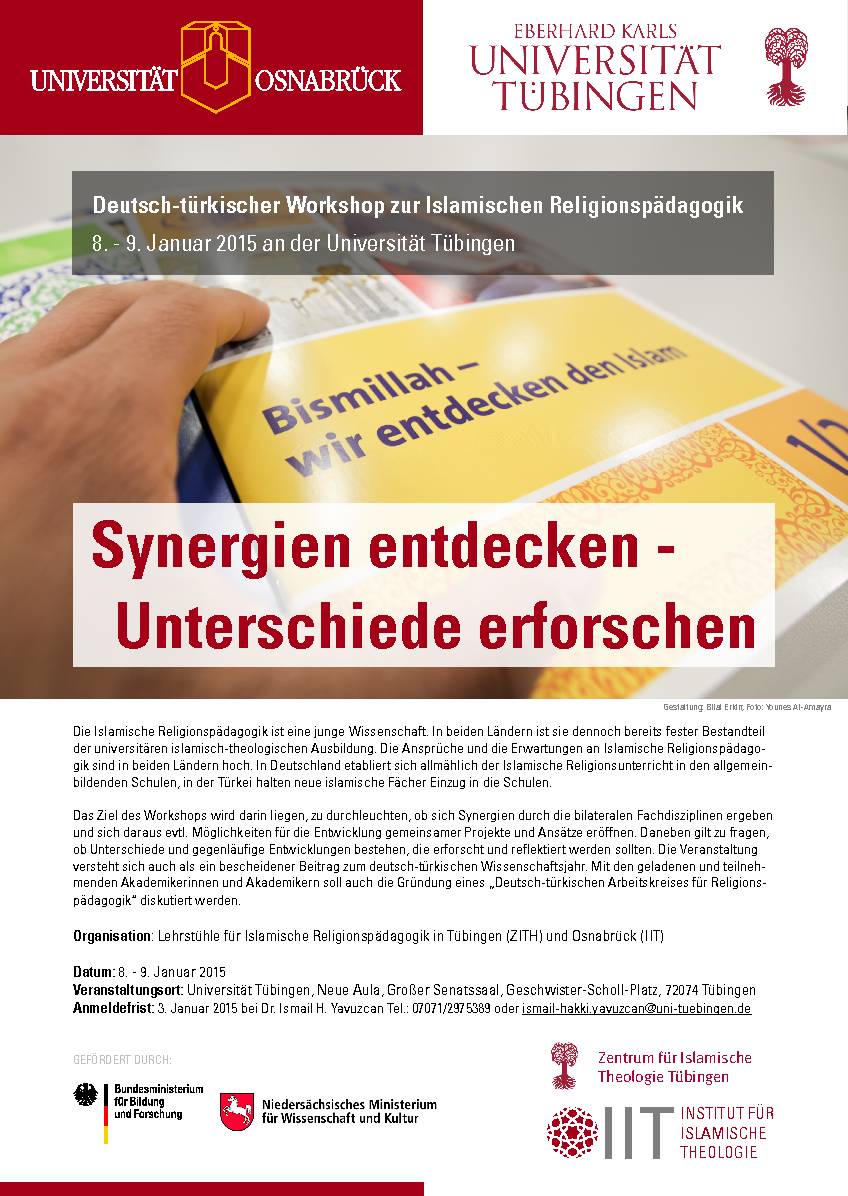 - 05.-06.12.2014 | Meine Religion - Deine Religion - Keine Religion: Zu Perspektiven einer Didaktik der Differenz der Fächergruppe Religion/Ethik/Werte und Normen. Jahrestagung des Instituts für Islamische Theologie der Universität Osnabrück und des Zentrums für Islamische Theologie der Universität Münster